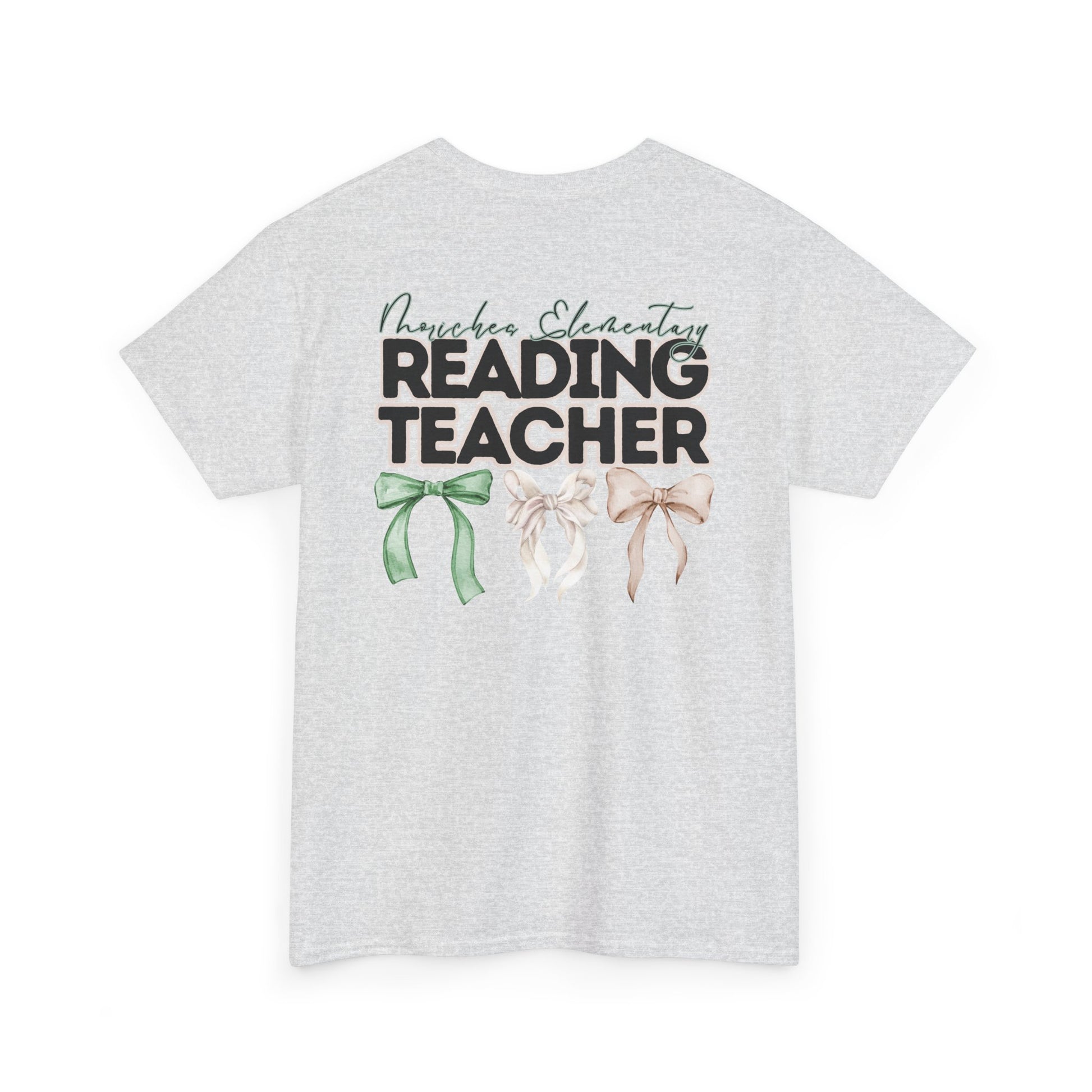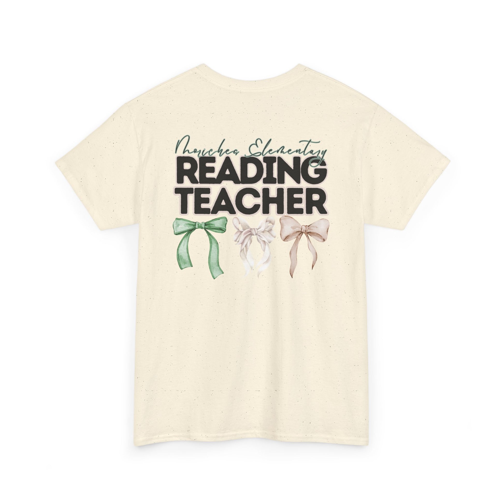Moriches Reading Teacher and Bows- Unisex Heavy Cotton Tee with Bow Design