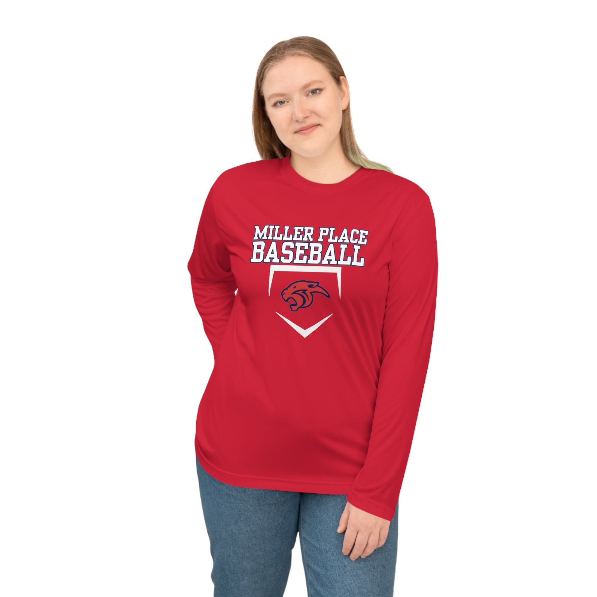 Lightweight, athletic long-sleeve built for play and practice. This breathable performance shirt moves moisture away from skin, dries fast, and offers UPF 30+ protection so you can stay out on the field longer. The athletic fit and extra-light 3.5 oz fabric feel barely there while still holding shape through washes. A clean Direct-to-Film logo sits at the chest for a sharp team look. Wear it for early-morning drills, hot afternoon games, or cool-weather warmups — it layers easily under hoodies or jackets and keeps you comfortable from warmups to the final out.